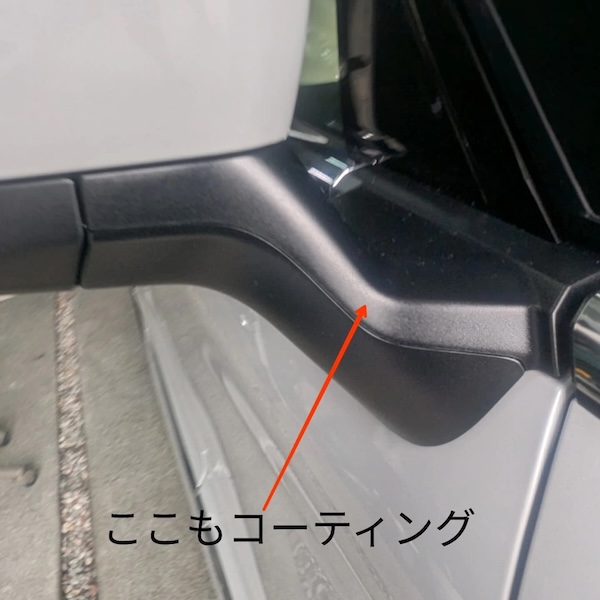 当店の特徴は、塗装部分だけでなく、未塗装樹脂部分やゴムモールなどにもコーティングを施すことです。