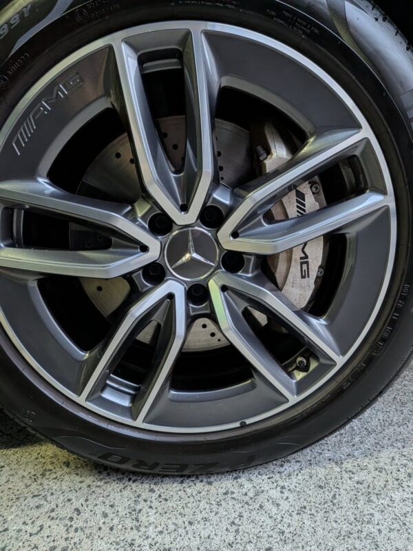 Mercedes-AMGの象徴ともいえる大径アルミホイールも、今回しっかりとケアしました。